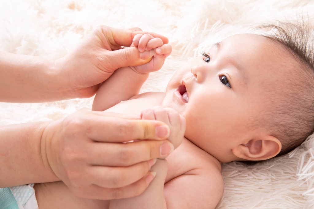 ベビーマッサージは、赤ちゃんの体の発育や発達を促進します。