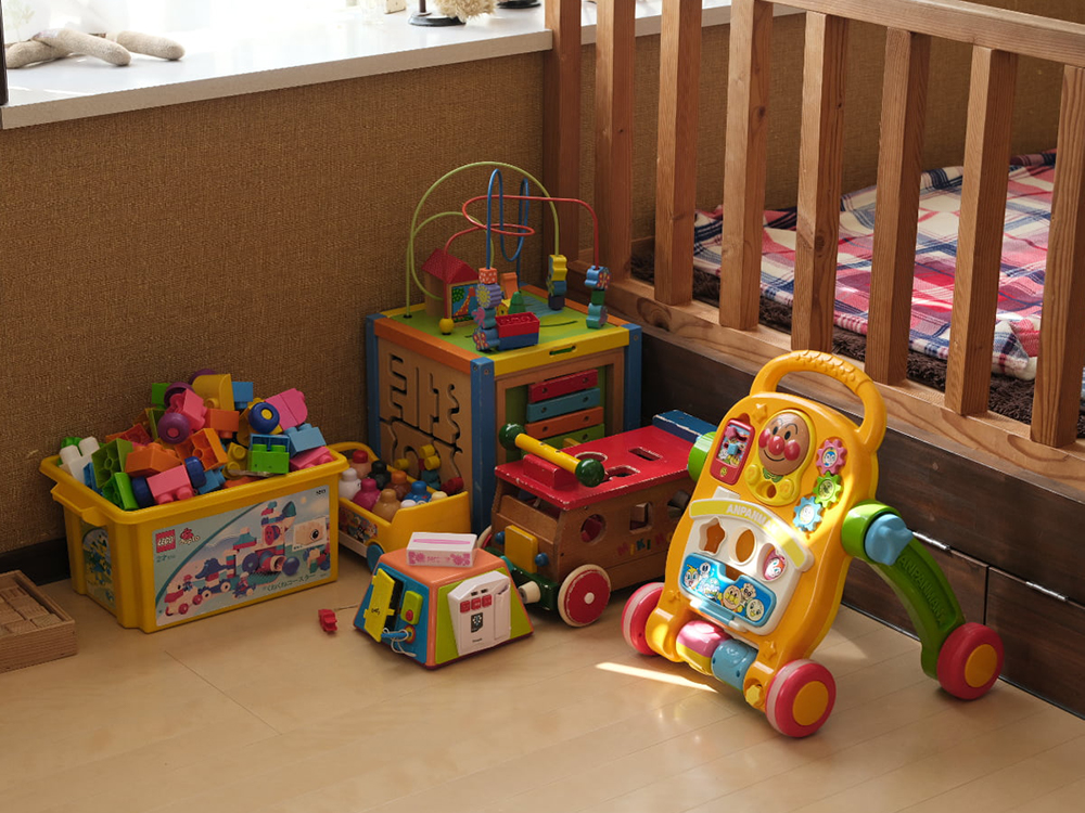 0歳から未就学前まで、幅広く楽しめる絵本やおもちゃがたくさん揃っています。知育玩具や、ブロック、結構大きなおままごとセットや車のおもちゃなど、お子さんの月齢や年齢、性別に関係なく楽しめるように用意されています。