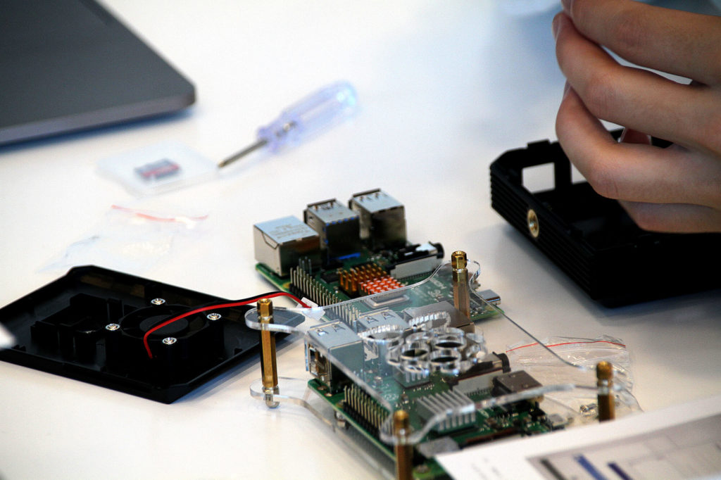 イギリスのBBC(英国放送協会)が開発した小型のコンピューターボードです。「マイクロビット」と読みます。プログラミング教育に特化しており、前述のブロックプログラミング言語のScrathやPythonなどのテキスト言語で組み立てたプログラミングと接続することで、ロボットやアプリケーション、装置を作成します。