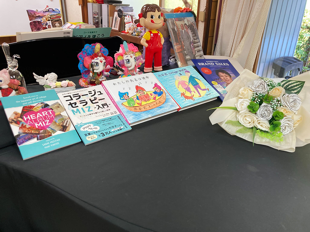 水谷 コラージュセラピーを学んでくださる人はたくさん増えたんですけど、それまでは受講生の為のテキストで教えていたのです。「誰でも読める本が欲しい」という要望があって、Amazonから「コラージュセラピーMIZ入門」を出版しました。これまで海外でセミナーを開く機会もあって、「世界にも広げて欲しい」と言われていたので、いろんな方の協力を得てー昨年英訳版も出版することができました。