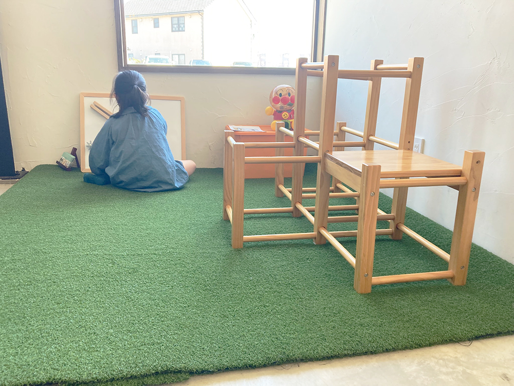 プレイスペースはこんな感じ。春休みでお母さんについてお店にいた友田店長のお嬢さんがモデルになってくれました。