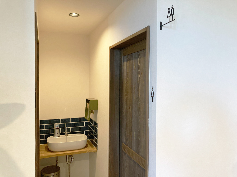 店内もシックなおしゃれ空間!利益度外視のゆとりあるテーブルレイアウトです。半個室になっているテーブル2席もあるので、お誕生日会などのちょっとしたお祝い会にもいいかもしれませんね。インパクト大でオシャレすぎるのでトイレも思わずパシャリ(笑)