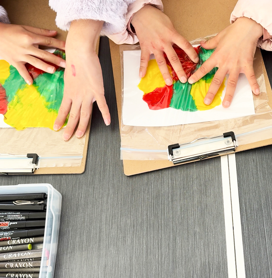 さらに、お花シールを使った手足型アートで、子どもたちの成長記録や思い出作りができる制作活動も行います。