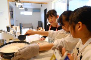 今日の会場は山県市で麹料理教室を開かれている平田真由美さんのご自宅です。テキストと資料の本が置かれていて準備万端!講座開始です!