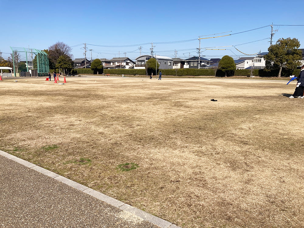 笠松運動公園には、ソフトボール場2面分の広さがある運動場があります。サッカーのゴールポストも用意されているので、野球・ソフトボール・サッカーなどさまざまなスポーツが楽しめます。