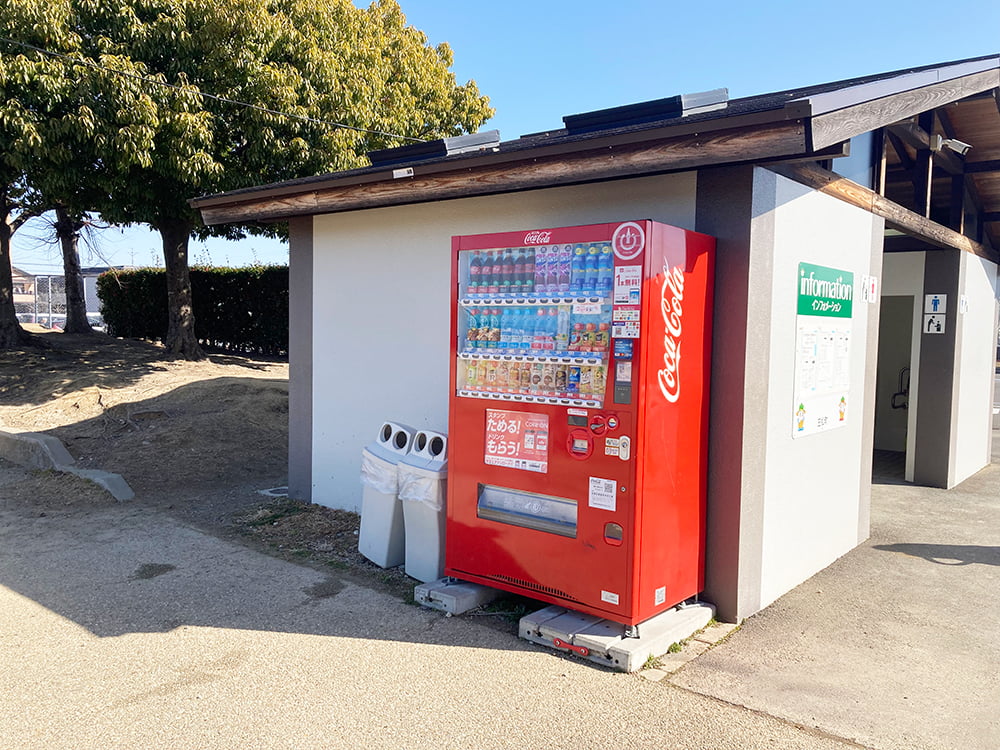 遊具エリアのトイレ棟の脇には自動販売機が設置されています。夏場いっぱい遊んで汗をかいたからしっかり水分を取ったら、持ってきた飲み物がなくなってしまった!また、お子さんがうっかり家から持ってきた飲み物をこぼしてしまった!そんな時でも安心です◎