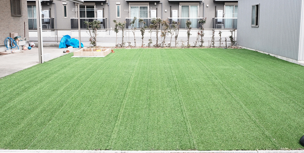 天候に合わせて、広々としたお庭でも遊ぶことができます。お庭は人工芝になっているので、ちょっとくらいのおやんちゃでも安心です。砂場で砂遊びをしたり、夏にはプールを出して水遊びが楽しめます。