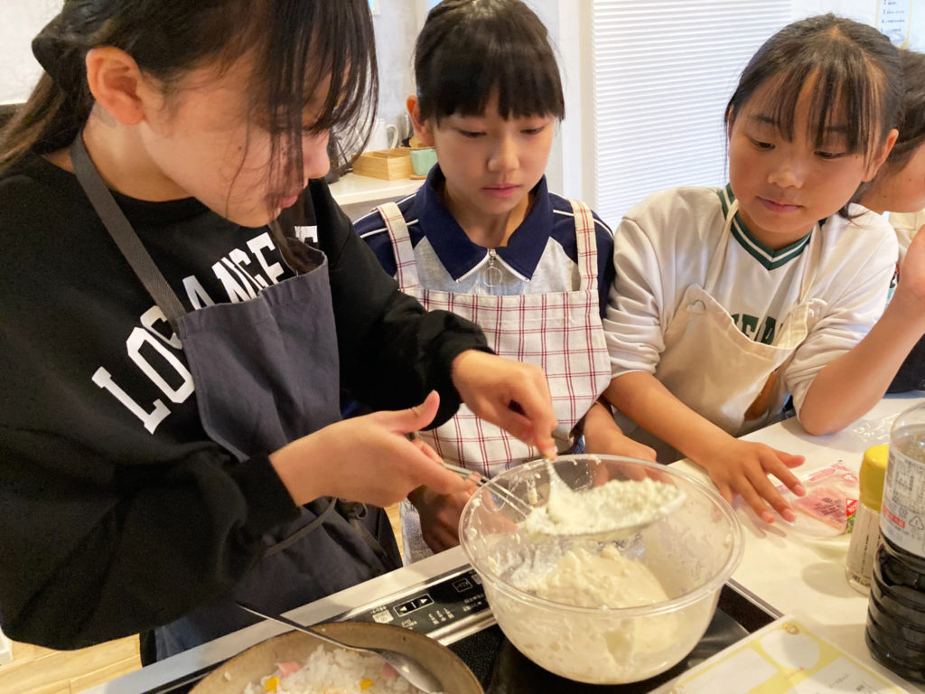 子どもたちは、事前に大まかなレシピだけを受け取ります。それを元に、「少々」ってどのくらいだろう?混ぜるのはこのくらいでいいのかな?など、子どもたち自身がどうするかを考え、調理を進めていきます。仕上がりの結果が失敗だったとしてもそれはそれ、次の機会への学びになります。子どもたちは砂場でお城を作るような感覚で料理と向き合い、自由に実験しながらモノづくりが体験できる場なのです。