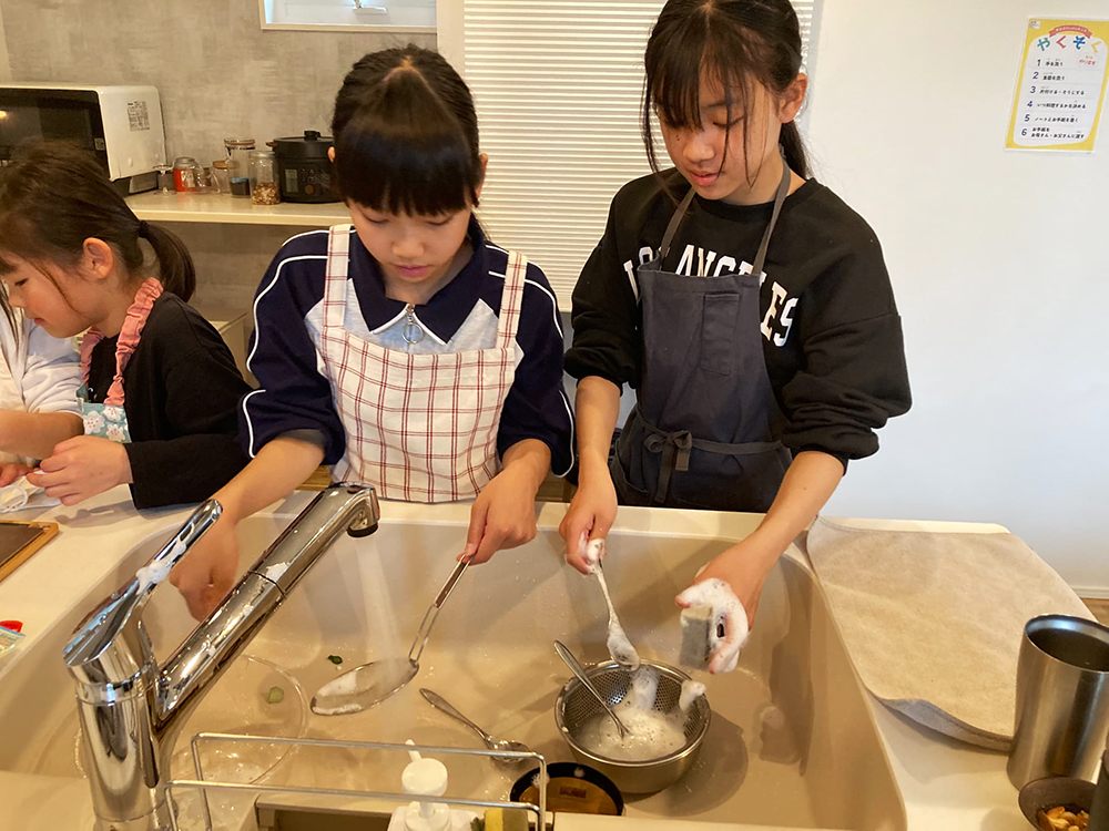 レッスンでは料理をするだけでなく、食材や器具の準備、洗い物やお片付けまで、「料理」のすべてを子どもだけで行います。子どもたちは達成感を得られ、日々の保護者さんの苦労が実感できて、感謝の気持ちが芽生えそうですね。