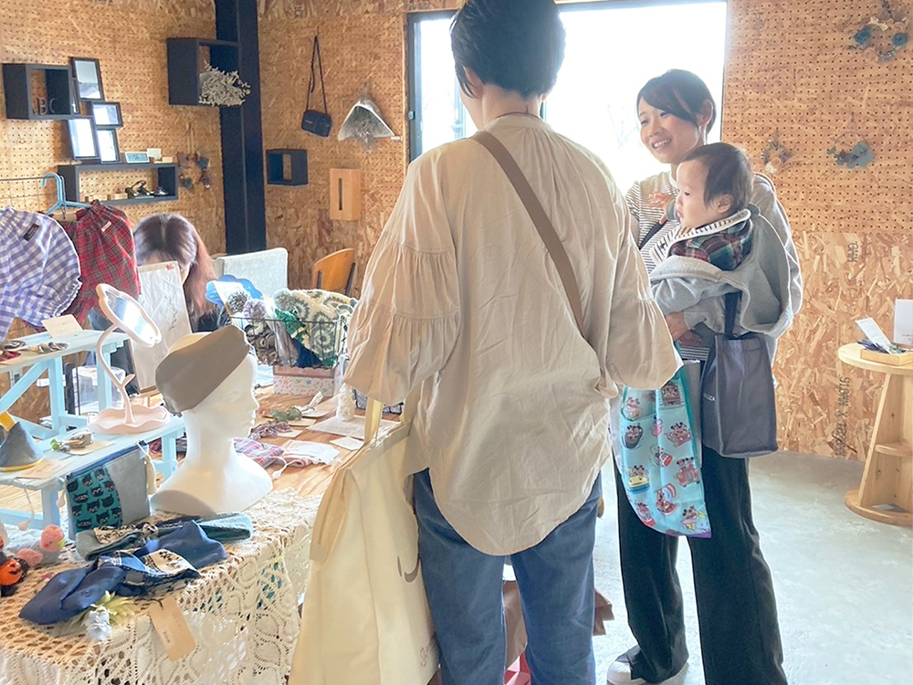 なおこさん「『ゆずりゆーず』はおゆずりがメインの活動ではありますが、ボランティアで関わってくれる方々の中には特技や好きな事があったり「これから何かやってみたい」という思いをもつママさんが多くいます。そういう方々を応援したいので、そんなママさん達の活躍や挑戦の場にもできたらと思ってます。そんな思いから、毎回おゆずり会のとなりでミニマルシェを開いています。来てくれた方にはおゆずり会だけでなくそのマルシェも楽しんでもらいたいし、出店するママさんはお客さんとの交流で自分のやりたいことを更に発展させられる場になればと思います。単体では拡がりに限界がある活動でも、『ゆずりゆーず』の場を使って欲しいです。