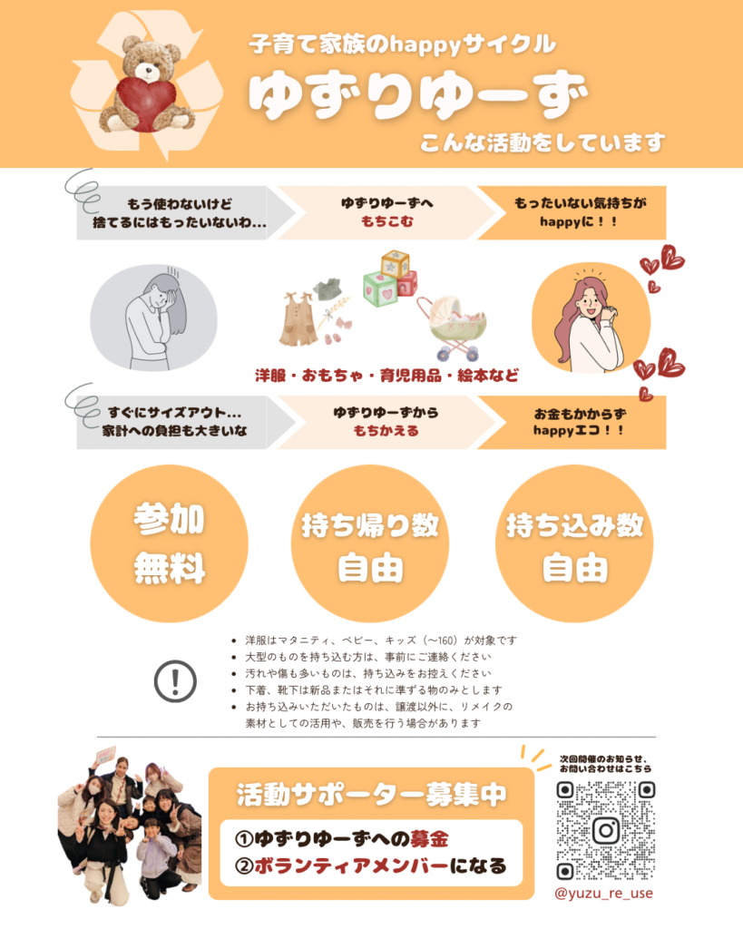 お問い合わせ:ゆずりゆーす公式インスタグラム (ボランティアスタッフ募集中!)